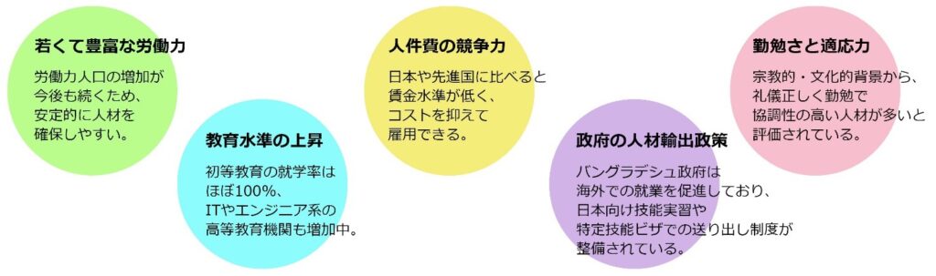 バングラデシュ支社と連携して、人材発掘から企業様への入社後まで、一貫したクオリティのサービスをご提供します。